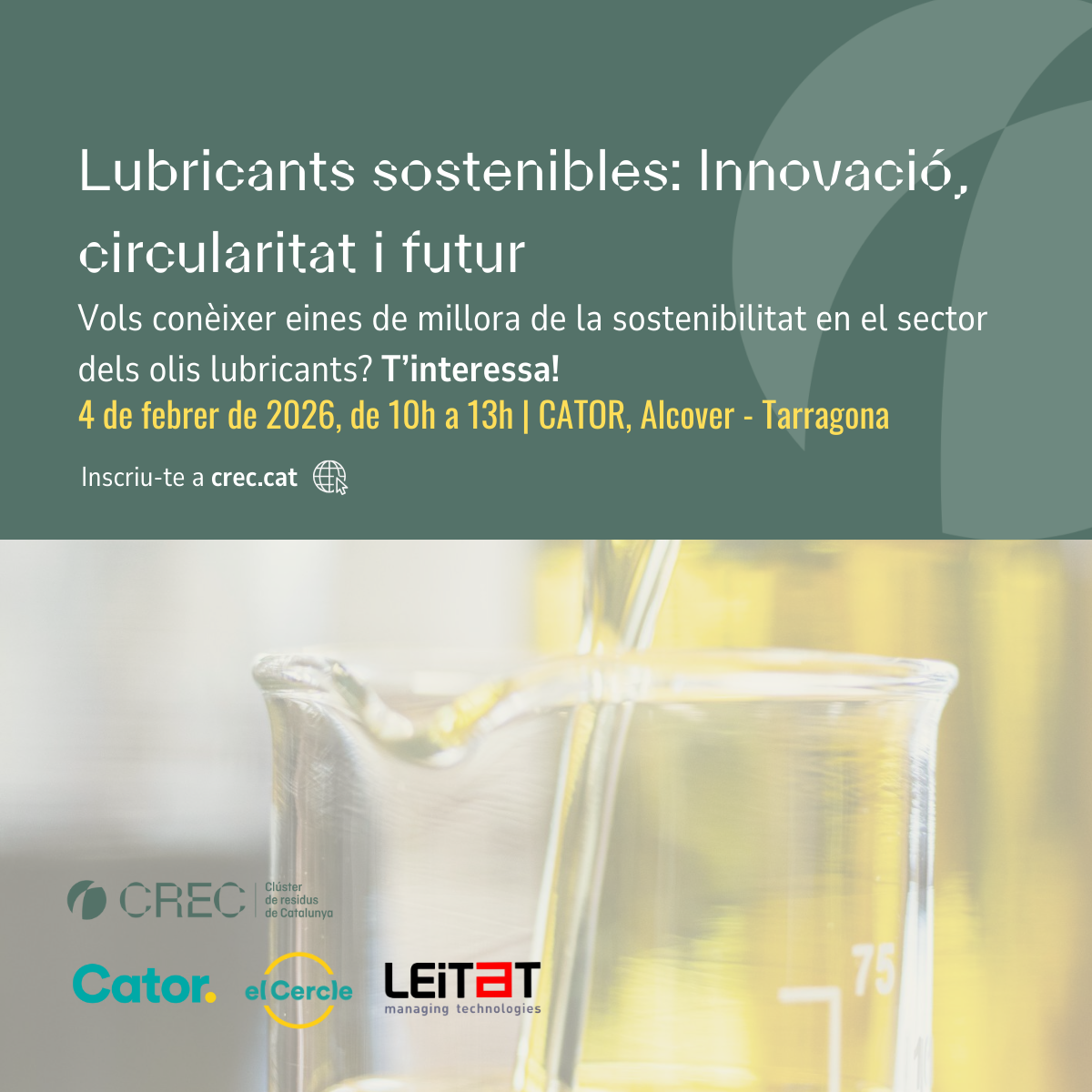 El CREC – Clúster de Residus de Catalunya, juntament amb CATOR i LEITAT, organitza una jornada presencial sectorial adreçada a empreses fabricants de lubricants, olis industrials i additius, amb l’objectiu de posar el focus en: